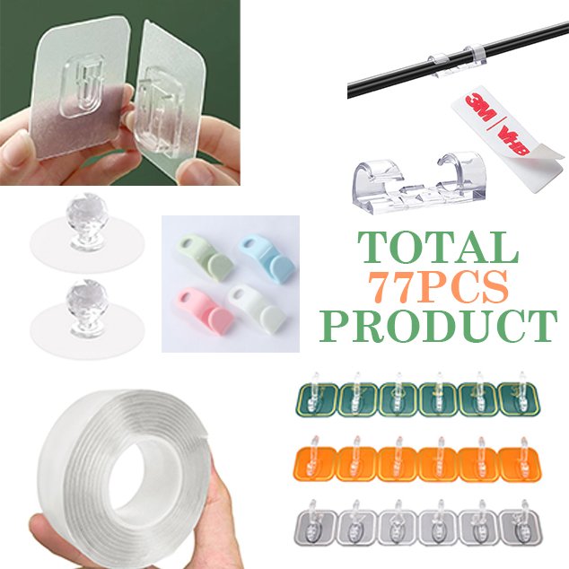 এবার পাচ্ছেন ৭৭ পিসের মেগা স্মার্ট হোম অর্গানাইজার কম্বো, একটি প্যাকেই ঘরের সব প্রয়োজনীয় ওয়াল হুক, কেবল ক্লিপ, ডাবল টেপ ও হ্যান্ডেল।